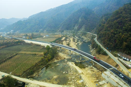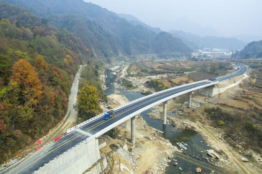 本項(xiàng)工程位于金寨縣燕天路上,是連接天堂寨風(fēng)景區(qū)重要旅游道路。去年“6.30”特大暴雨造成漁潭村境內(nèi)山體滑坡、道路塌方、交通中斷。災(zāi)情發(fā)生后,各級(jí)政府及交通主管部門十分重視,立即組織搶修,特別是負(fù)責(zé)該路管養(yǎng)的六安市公路管理局在保障通行的前提下,以最快速度組織專家評(píng)審、論證、設(shè)計(jì)、招標(biāo)、實(shí)施。該項(xiàng)工程全長(zhǎng)1356米,包括2座大橋、1座中橋,中標(biāo)施工企業(yè)六安市交通公路實(shí)業(yè)有限公司精心組織、全力投入、克服重重困難,經(jīng)過(guò)242天的艱苦奮戰(zhàn)終于如期、保質(zhì)、安全完成施工任務(wù)。